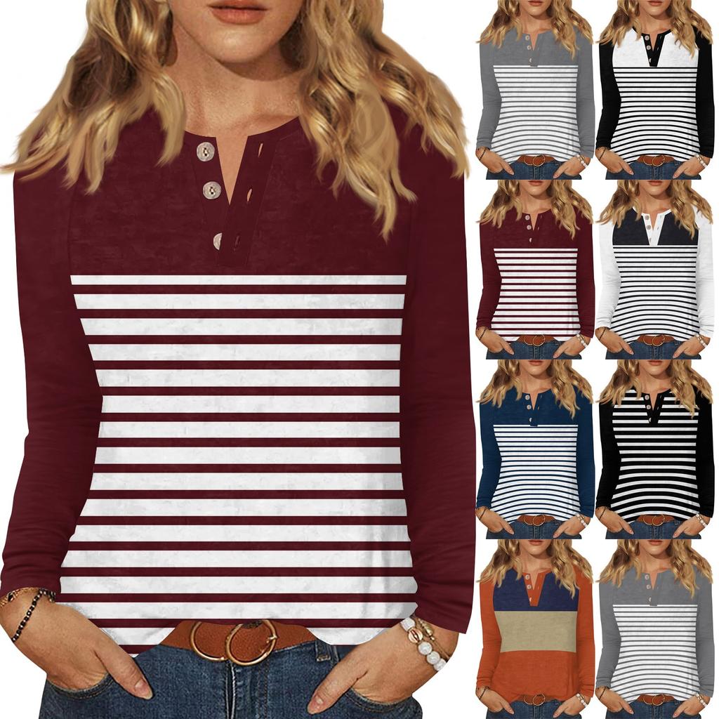 Camiseta de Mujer Estampada Botón Manga Larga Diario Fin de Semana Moda Básica Cuello en V Regular Top