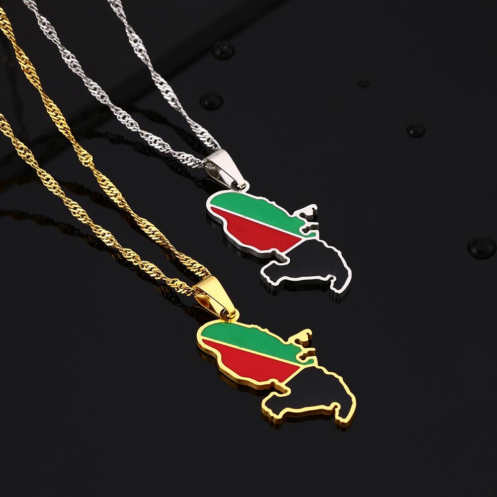 Collar Mapa Isla Martinica Europea y Americana - Diseño Geométrico Unisex de Acero Inoxidable para Parejas