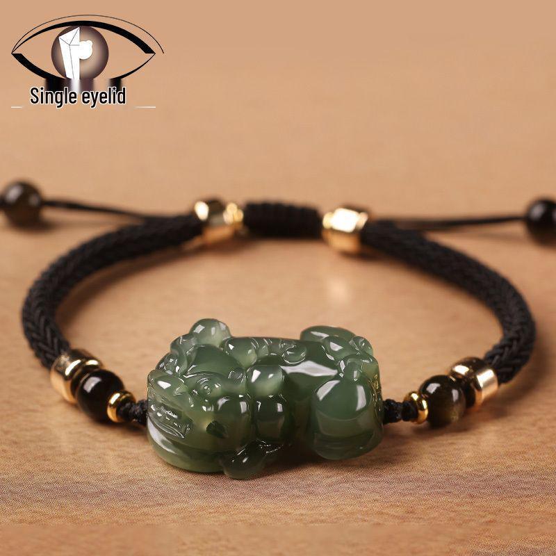 Pulsera Amuleto Pixiu Atractora de Riqueza de Jade Hetian para Parejas - Joyería de Cuerda de Mano de Jade y Cuentas para Mujeres y Hombres.