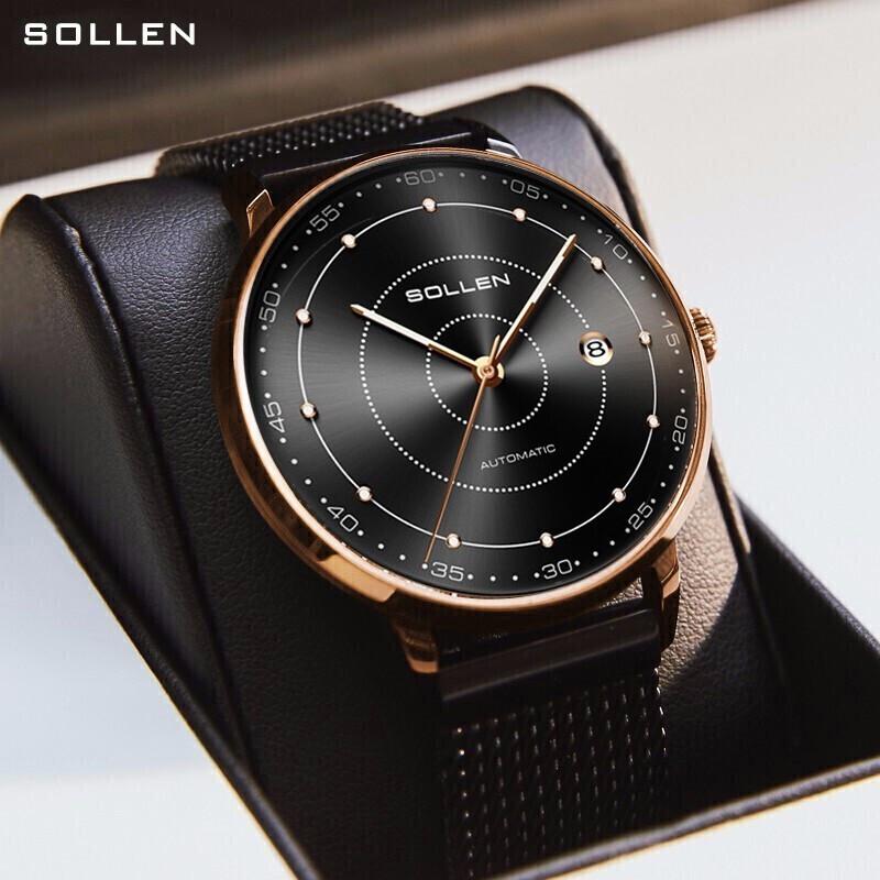 Solon Ultra-Thin Automatic Men's Leather Strap Waterproof Watch - Simple & Stylish.