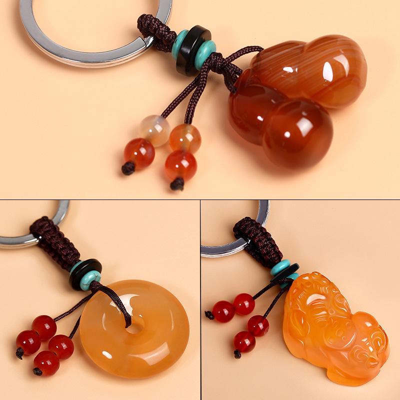 Chalcedony Pixiu Wealth Keychain & Agate Peace Buckle Pendant