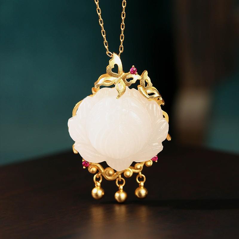 Collar de Borla de Loto Chapado en Oro Imitación Jade Primavera/Verano 2023 con Alta Retención de Color