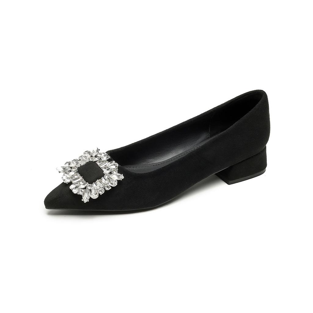 Pointed single shoes women's thick heels rhinestone high heels shallow mouth one pedal black commuter shoes