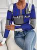 YYFS Women's Fashion Casual Spring Autumn Colour Block Print Long Sleeve POLO Neck Blouses & Shirts