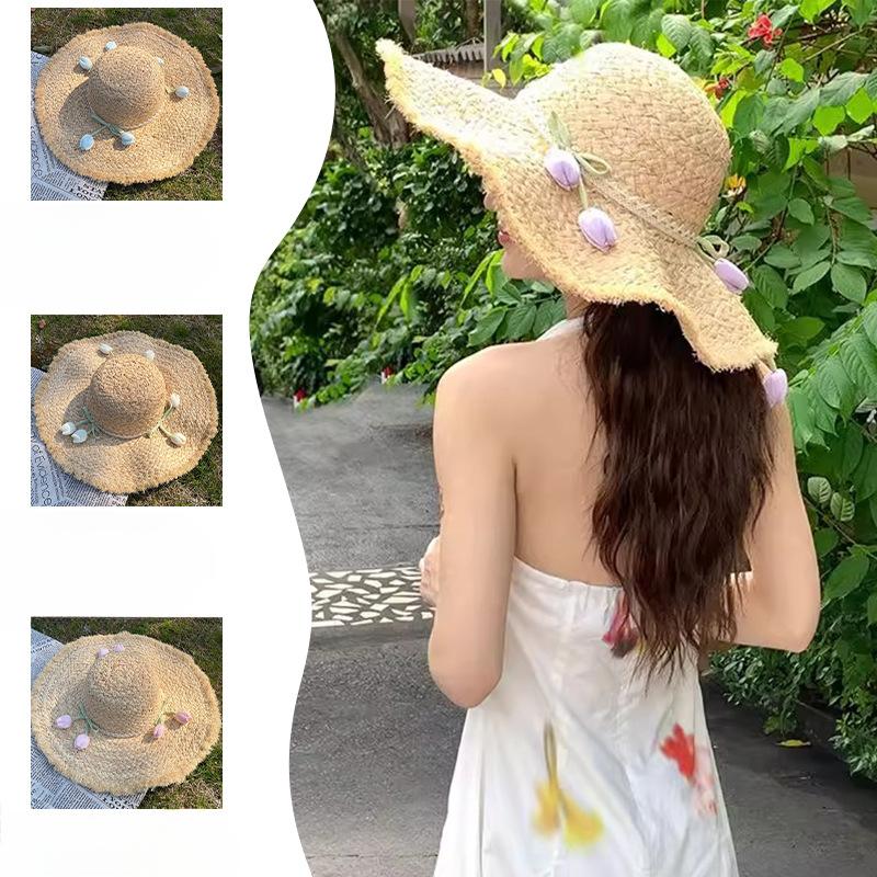 Japanese and French Sweet Tulips Straw Hat Sun Protection Big Brim Sun Protection Lafite French Big Brim Straw Hat