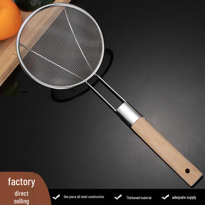 Stainless Steel Ultra-Fine Skimmer with Wooden Handle for Household and Commercial Use