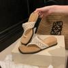 Small man~ holiday wind hollowed-out crocheted toe flip-flops square head sandals women's summer breathable niche cool slippers