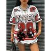 Oversized T-shirt For Women V-Neck Short Sleeve Summer Patchwork New York 28 Print Casual Tees Sports Football Jersey Y2k Tops