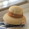 Simple and elegant temperament pleated ribbon lampshade hat women's summer big brim straw hat foldable seaside sunscreen beach hat