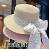 Bow flat top top hat UV protection versatile casual straw hat women's summer seaside vacation beach hat