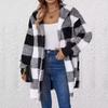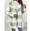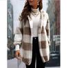 Loose Plaid Color Blocked Plush Cardigan, Fashionable Sweater for Women