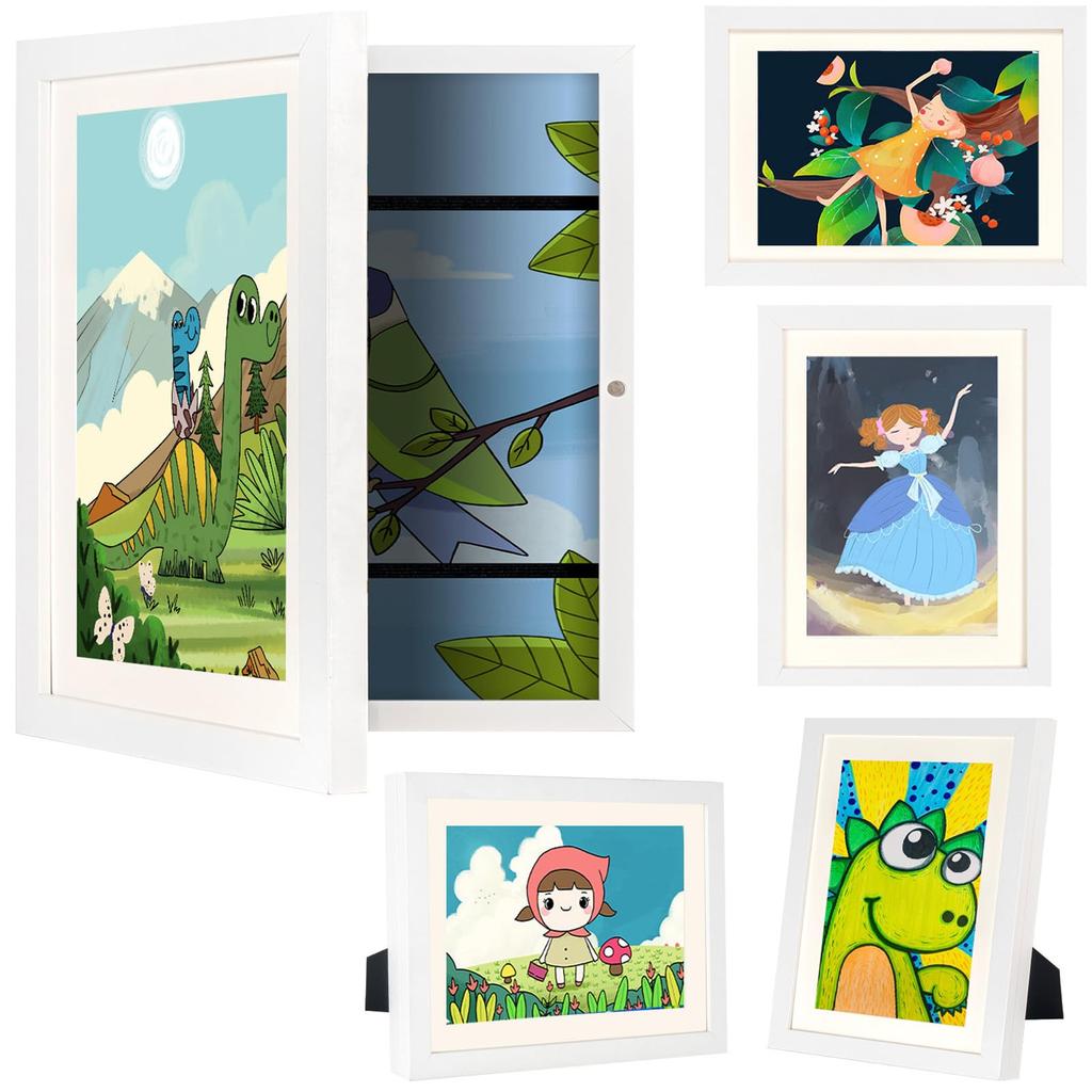 [Multifunctional art frame, wide range of uses] This photo frame is not only suitable for children's drawings, but also for paintings, posters, awards and certificates, and A4 paper size items. It can also be used to display and store children's photos, baby photos, postcards, scrapbooks, concert tickets, and other memorabilia. The frame has depth, so you can display thick or three-dimensional works.