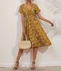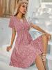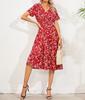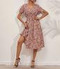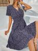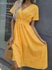 Fashion Women's Casual V-Neck Printed Midi Skirt Elastic Waist Dress