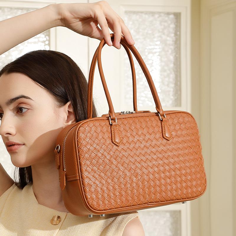 Cowhide Woven Handbag Genuine Leather Single-shoulder Hand-carry Crossbody Commuter Bag