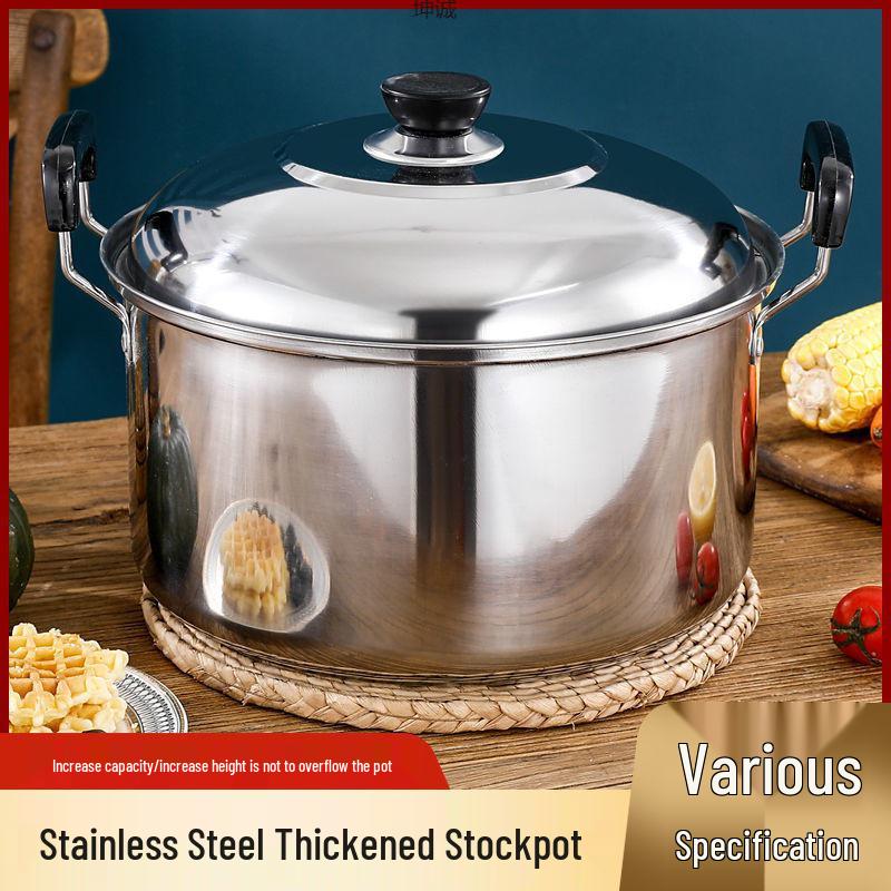 Olla de Acero Inoxidable de Gran Capacidad para Sopa y Fideos con Tapa para Cocinas de Inducción y Gas