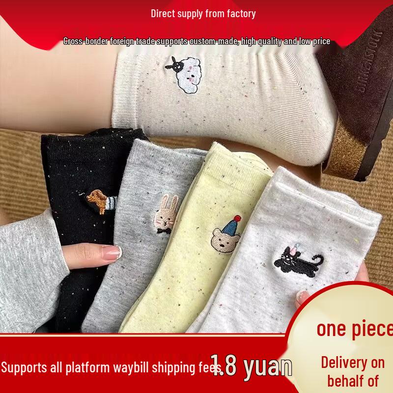 Japanese Cute Animal Embroidery Mid-Calf Bow Socks – Versatile Cartoon Academy Style for Spring and Autumn