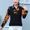 Autumn Female Peter Pan Collar Ruffles Spliced Fashion Shirt Elegant Korean Printed Long Sleeve Loose Blouse Women's Clothing