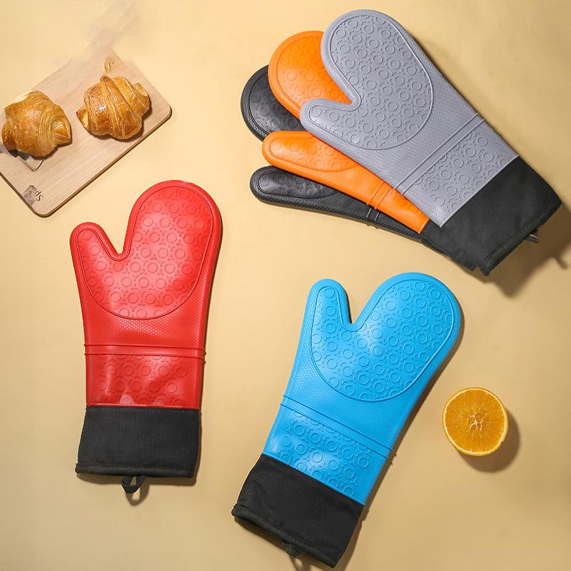 Guantes de Silicona Gruesos para Hornear Impermeables Resistentes al Calor Manopla de Horno con Algodón Cocina Cocinar Microondas Guantes para Barbacoa Salvamanteles