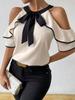 Temperament Double-layer Short Sleeved Shirts with Bow Collar Women’s Blouses & Shirts