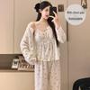 2024 Autumn/Winter Women's Gold Velvet Pajama Set: Long Sleeve & Pants, Palace Princess Style, Indoor/Outdoor Wear