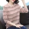 Women's Spring and Autumn Long Sleeve Knitted Shirt Loose Casual Striped Bottom Top