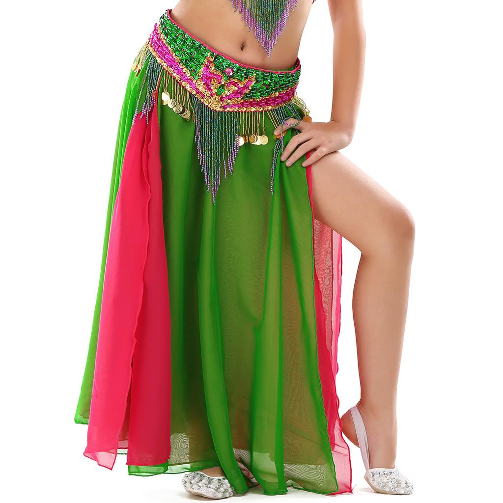 Children's Double Split Chiffon Double Color Skirt Belly Dance High End Skirt Children's Dance Split Leg Exposed Skirt