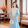 Vestido Camisero Francés Color Block Manga Larga para Mujer Primavera Otoño Entallado Temperamental Juvenil Falda Larga