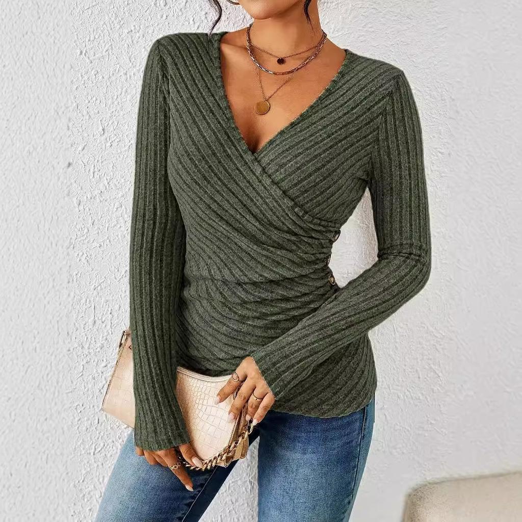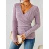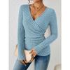 Camisetas casuales de manga larga para mujer con cuello en V y color sólido para primavera y otoño