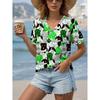 Women's T-Shirt Kawaii Cat Graphic Fashion Short Sleeved V-Neck Regular Tops Daily 3D Print Tee Summer Spring Casual Tops