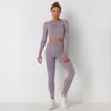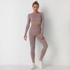 New Knitted Solid Color Seamless Long Sleeve Long Pants Yoga Set Running Sports Fitness Two Piece Set For Women