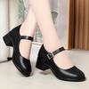 4cm Breathable Comfortable Shallow Mary Janes Soft Leather Shoes 2025 Fall Med Square Heels Shoes Black for Office Mom Work