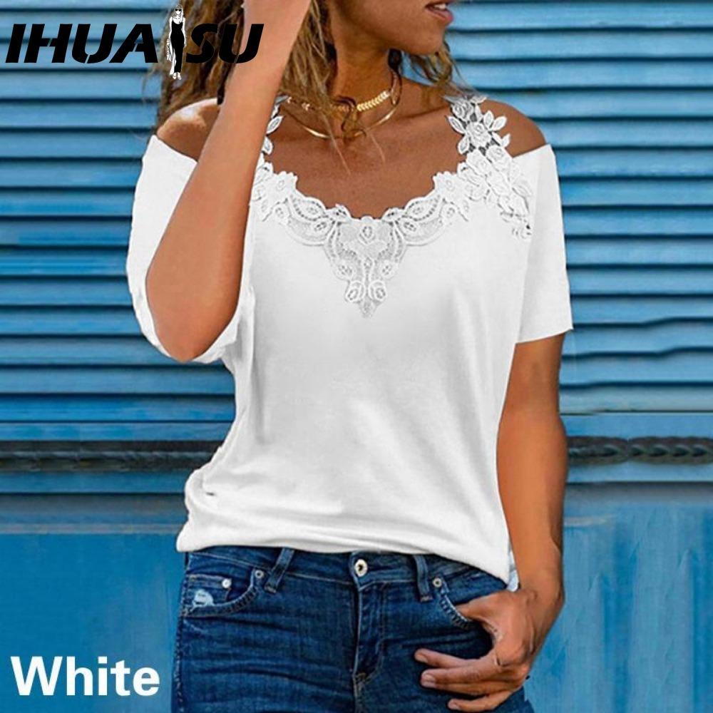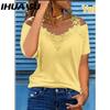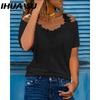 IHUASU Blusas y camisas de manga corta con cuello en V y estampado de color sólido informal a la moda para mujer