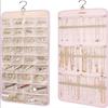 Organizador de Joyería Colgante de Doble Cara con Colgador Ganchos Metálicos Rollo de Almacenamiento a Prueba de Polvo Protección de Pared Soporte para Pendientes