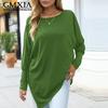 GMXIA Women's Fashion Casual Leisure Solid Color Print Long Sleeve V Neck Blouses & Shirts