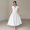 LYRIA French Style Suit Collar Belt Office Dress Fashion New Long Dress