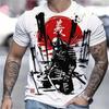 Camiseta de Samurái Japonés Impresa en 3D para Hombre Camisetas con Patrón de Personalidad Moda de Verano Cuello Red Tops Sueltos de Calle Camisetas de Manga Corta