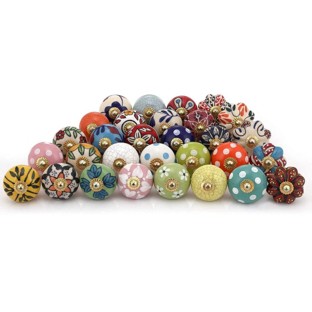 Ceramic Vintage Colourful Pottery Drawer Handle Door Knobs and Pulls for Kitchen Cabinets Home Interior Decor ( Multicolour) - Pack of 6
