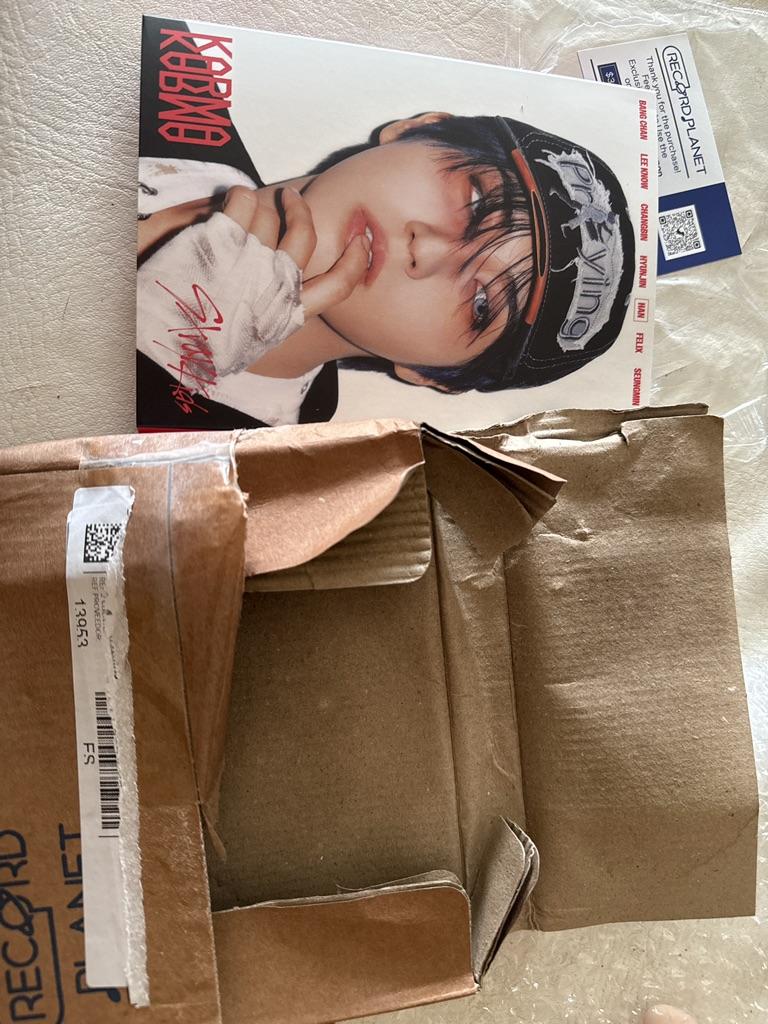 Pedí el accordion de Bangchan y me llegó Han. Es molesto que no lo aclaren bien pero bueno no pasa nada lo venderé por vinted. Lo peor es que el paquete estaba mojado, el cartón húmedo y por suerte con los envoltorios no le pasó nada, pero cambien de transportistas ~~