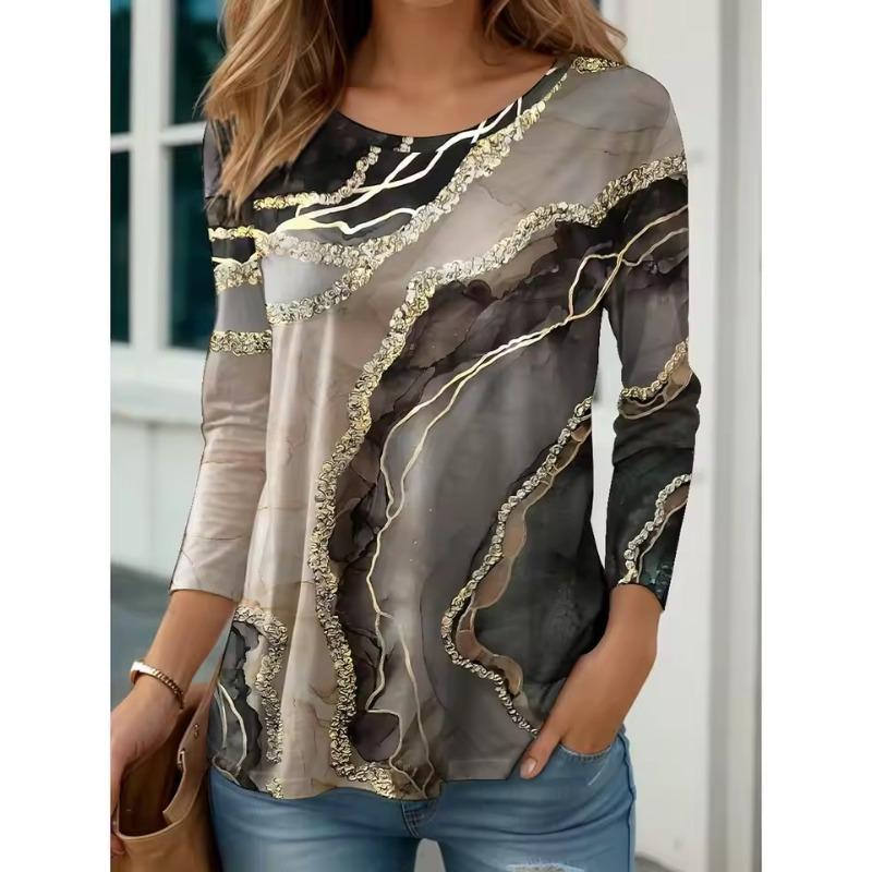 Women's T Shirt Tee Tops Graphic Abstract Print Long Sleeve Daily Weekend Fashion Crew Neck Regular Fit Spring & Summer