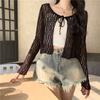 Hollow crochet knitted sweater women's summer outer shawl air-conditioning blouse short temperament gentle lace-up top
