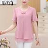 HNXC Blusas y camisas informales de manga corta con cuello en O y estampado de Color sólido a la moda para mujer