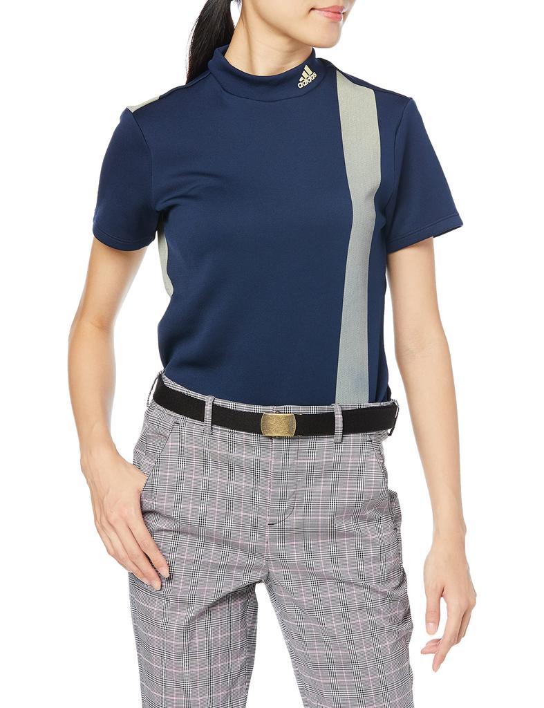 Camiseta de Golf Adidas Big Adidas Manga Corta Cuello Mock Universitario, Logotipo, Camiseta, Para Mujer, Azul Marino, J/M
