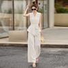 Royal sister Fan sleeveless vest fashion suit women's summer new age-reducing linen wide-leg pants two-piece set