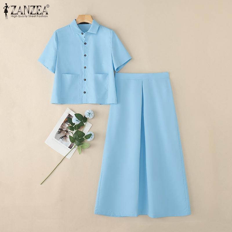 ZANZEA Blusa de Manga Corta para Mujer y Faldas Largas Conjuntos de Traje de Dos Piezas de Verano