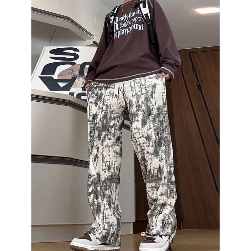 Loose Casual Pants Men's Tie-dye Thin Versatile Pants with A Simple Wide-leg Floor Trousers