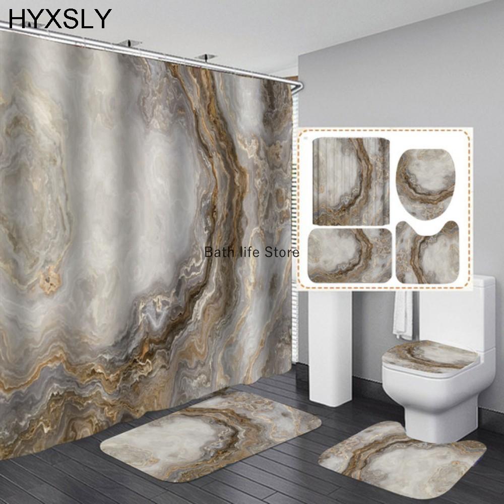 White Marble Shower Curtain Luxury Golden Modern With Non Slip Rug Mat Bathroom Curtain Waterproof Polyester Home Decor 180x180