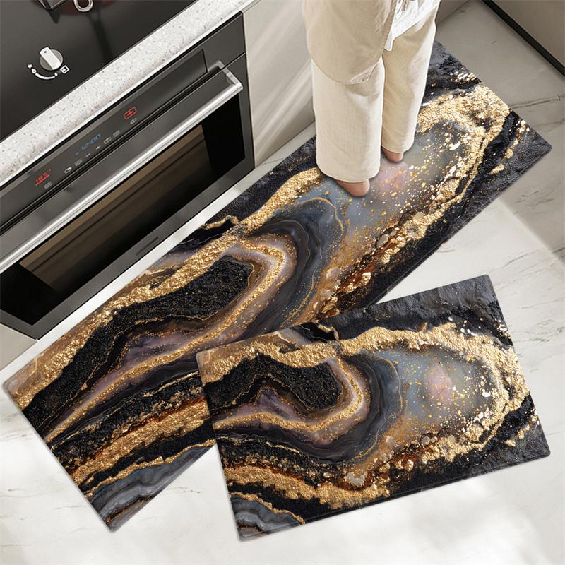 Abstract Print Kitchen Rug Set Absorbent Non-slip Soft Flannel Sponge Floor Mat For Bathroom Doormat Runner Carpet