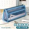 Pencil bag ins wind simple transparent mesh double-layer large-capacity student zipper stationery storage bag