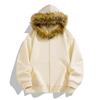 Sudadera con capucha retro americana con cuello de piel, tapeta inclinada, cremallera cálida
