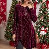 Vestido Casual de Manga Larga para Mujer con Cuello Cuadrado Holgado, Color Sólido y Plisado